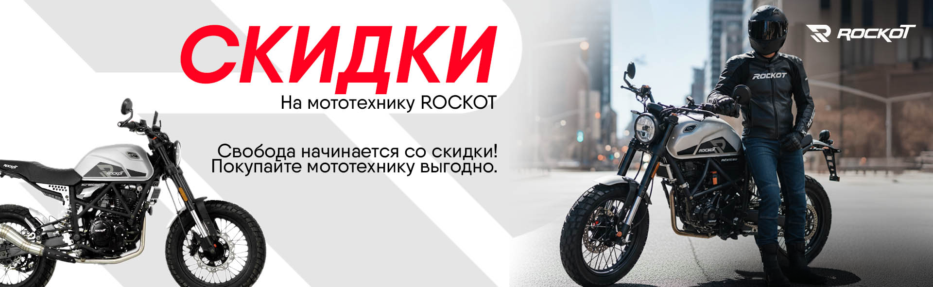 Друзья, для всех, кто мечтает о новых дорогах, мы объявляем специальные предложения. С сегодняшнего дня на мототехнику ROCKOT действуют новые цены!
