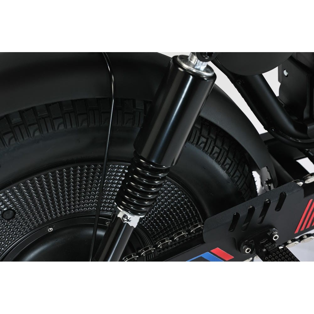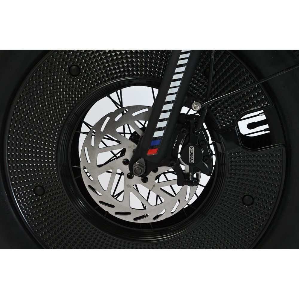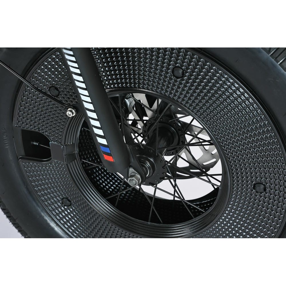 - Конструкция: алюминиевая рама с грузоподъёмностью до 150 кг, гидравлические дисковые тормоза, двухподвесная амортизация шины 20" для устойчивости на любом покрытии.