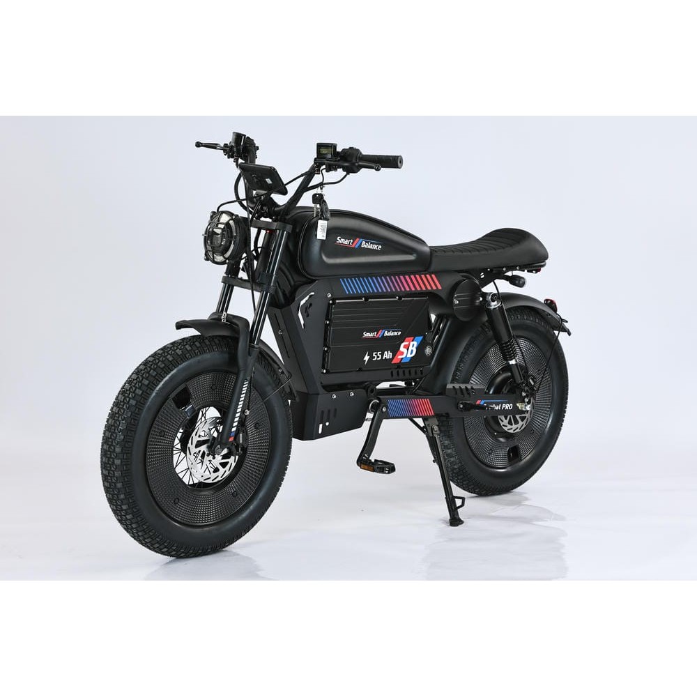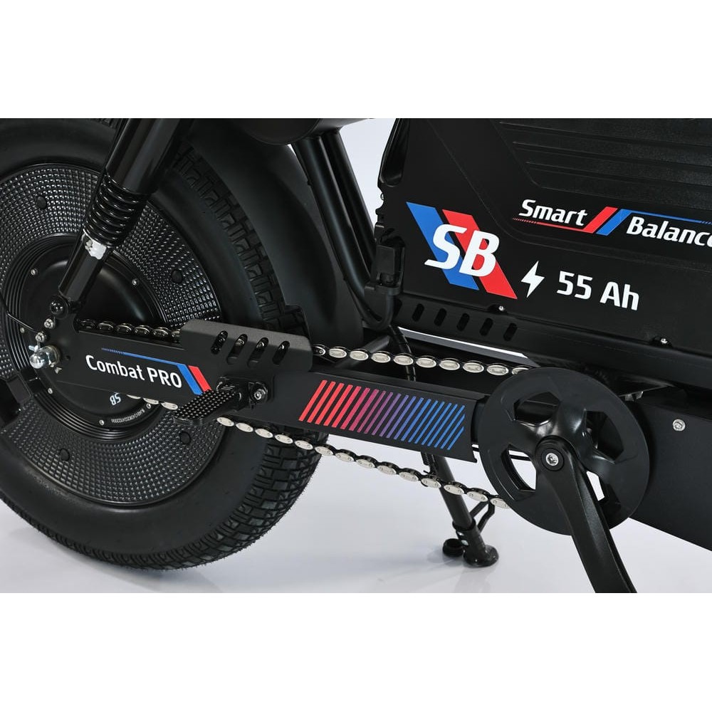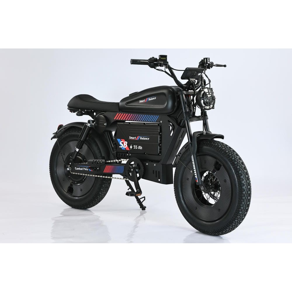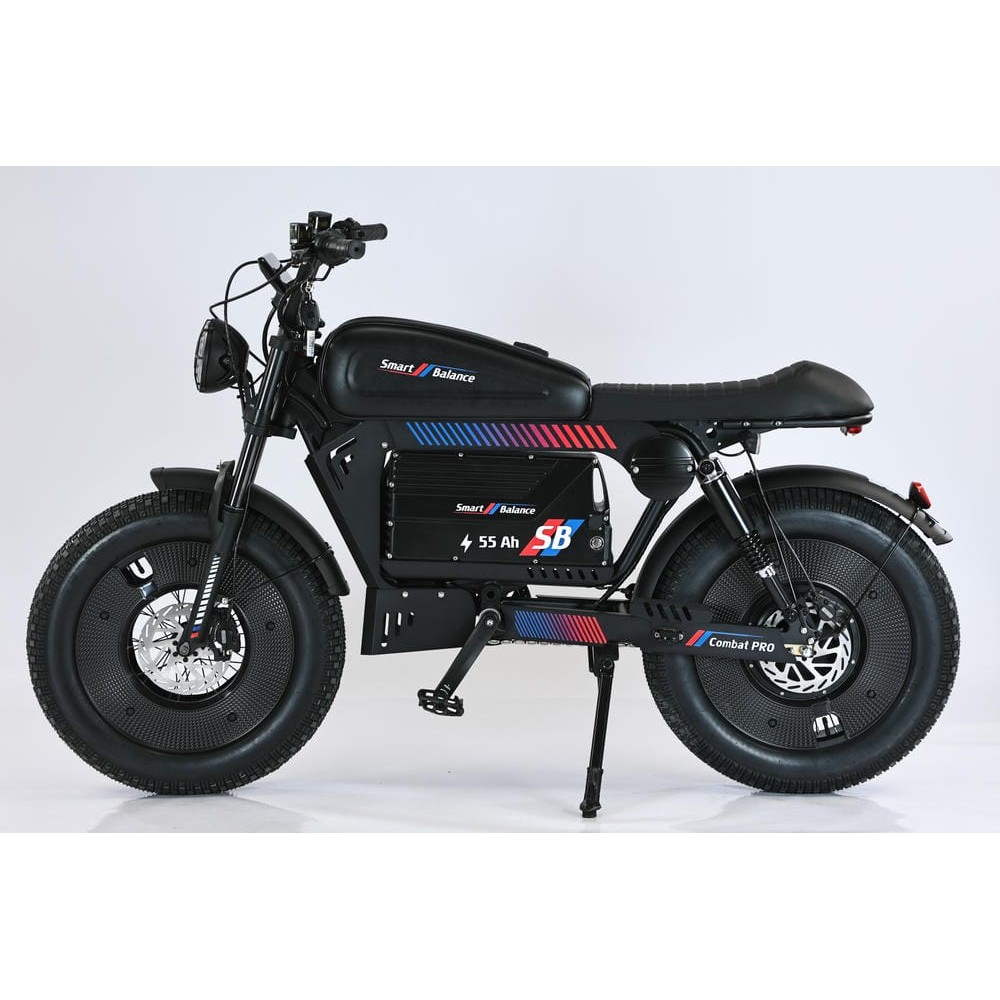 Электровелосипед SmartBalance CombatPro — это инновационный гибрид электроскутера и электровелосипеда, выполненный в стиле электромотоцикла. Модель сочетает мощность, технологичность и яркий дизайн, делая её заметной на городских улицах и за их пределами.