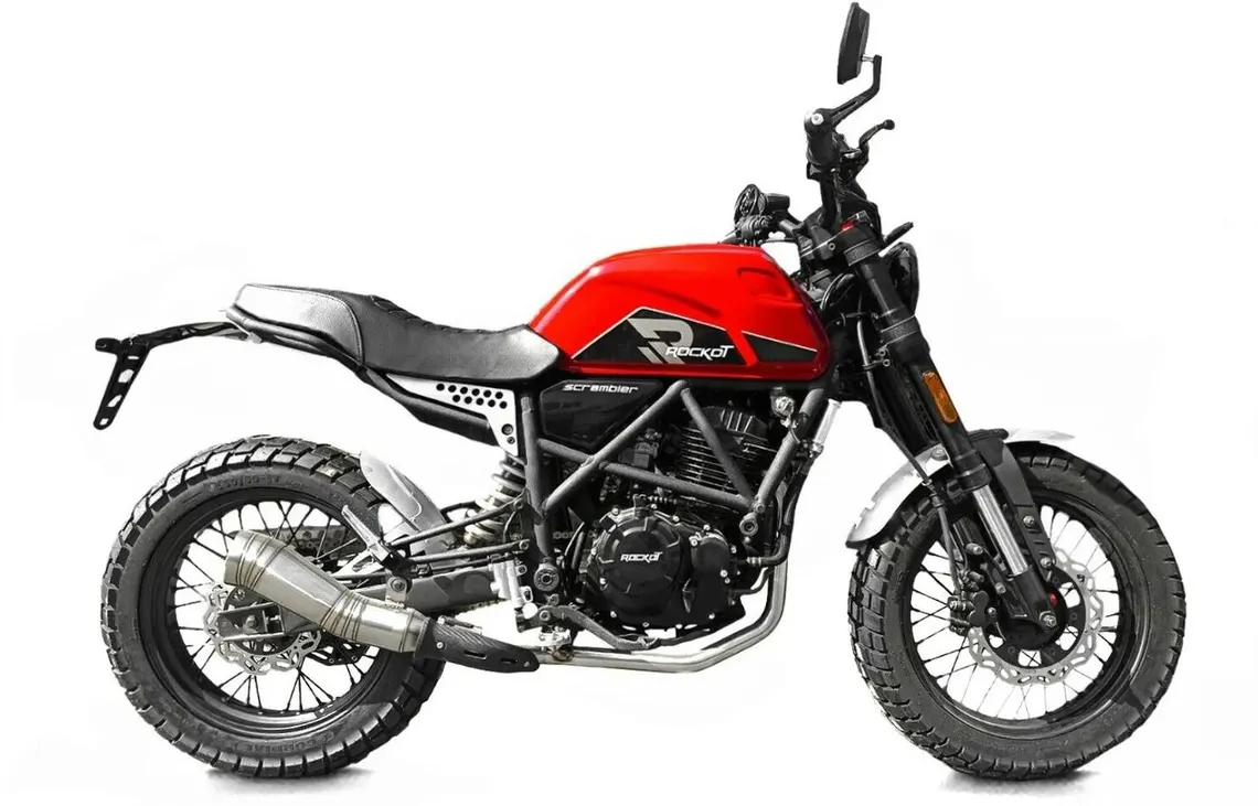 ROCKOT SCRAMBLER - настоящая городская зажигалка! Мотоцикл притягивает взгляды прохожих и надолго остается в памяти. Именно эта модель позволит по-настоящему ощутить вкус свободы и услышать, как она звучит. ROCKOT SCRAMBLER – это тот случай, когда в мотоцикле есть все, что вам нужно: стильный внешний вид, высокая проходимость, приятный рычащий звук и безупречная надежность, отраженная в каждой детали