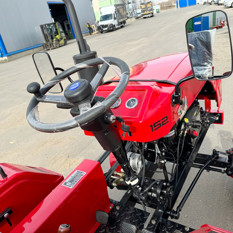 Минитрактор оборудован усовершенствованным ручным газом и имеет червячную передачу, благодаря которой руль можно вращать без усилий.