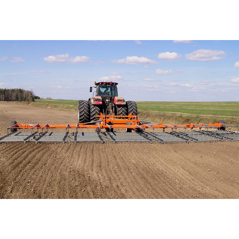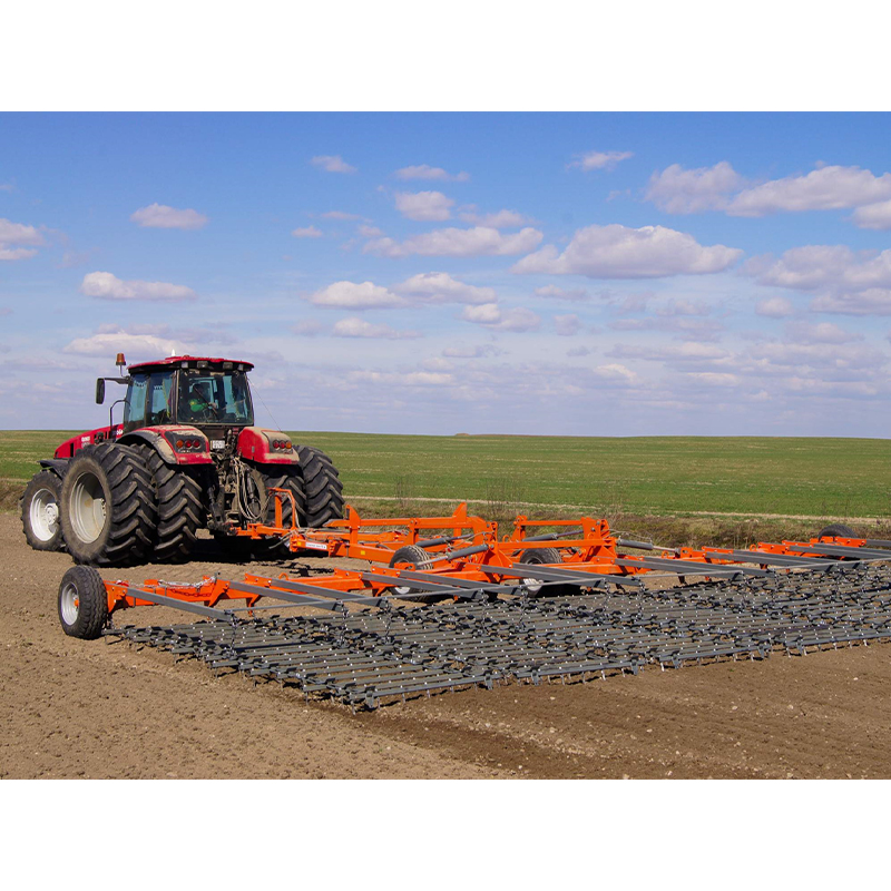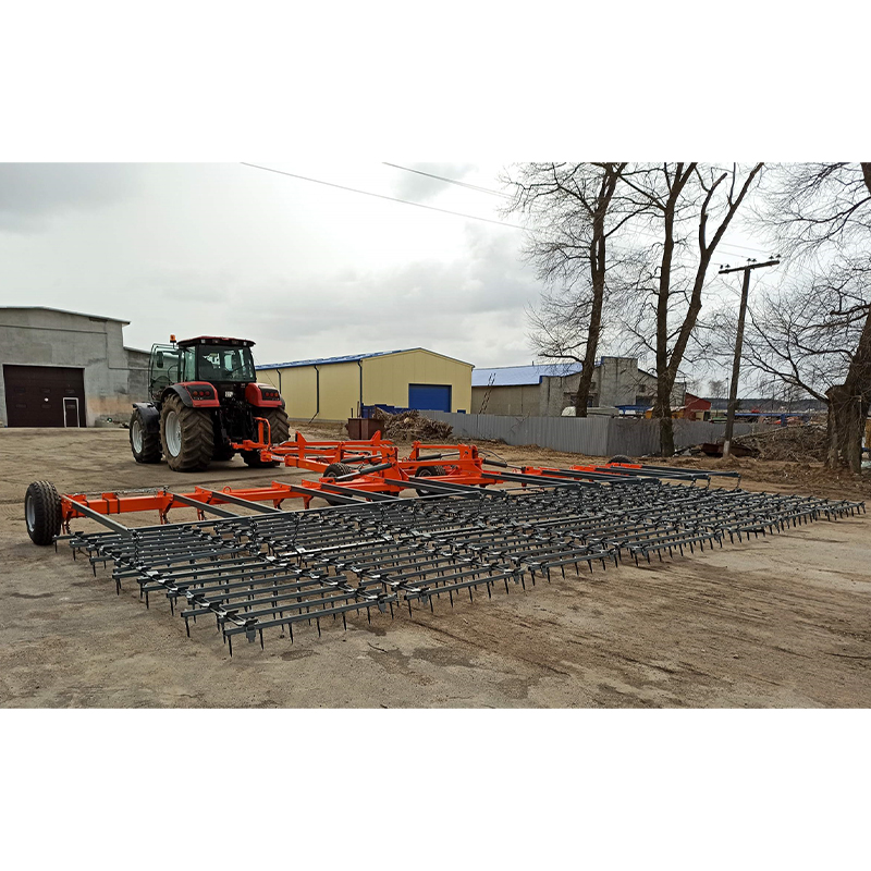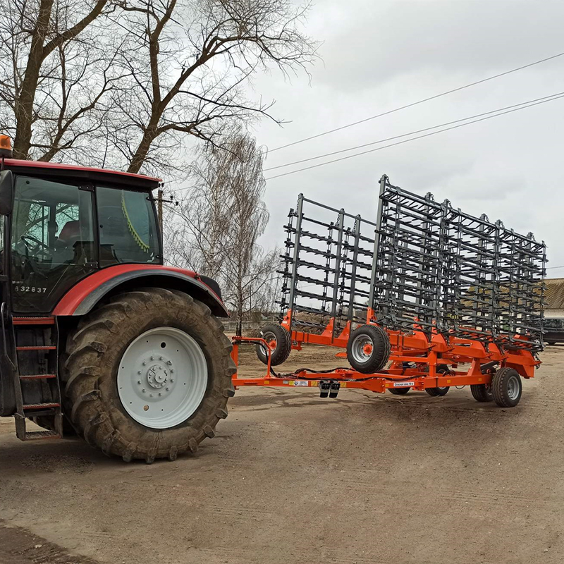 Борона оснащена 816 ромбовидными зубьями из стали, расположенными в 7 секциях. Высокая производительность, достигающая 9,4-17,7 га/ч, и рабочая скорость от 8 до 15 км/ч делают её незаменимым помощником в сельском хозяйстве. Конструкция бороны включает зубья с углом наклона к поверхности почвы 68 и 44 градуса, что обеспечивает эффективное рыхление и выравнивание почвы.