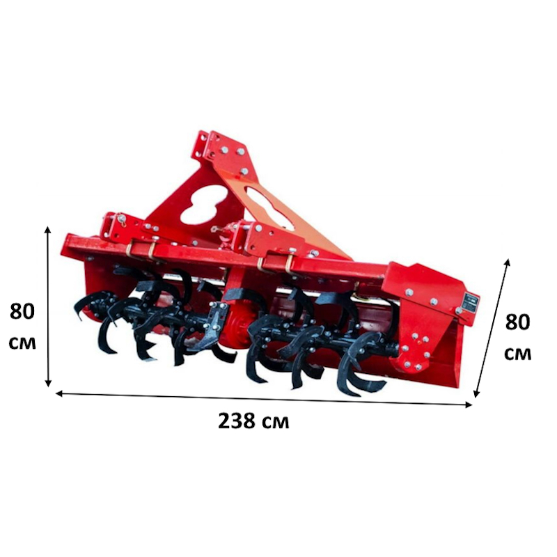 Модель оснащена 58 ножами типа IT245, которые крепятся на вращающихся валах и обеспечивают тщательное измельчение и перемешивание почвы. Такая конструкция ножей позволяет эффективно работать с различными типами грунтов, включая тяжёлые и заплывающие почвы. Усиленный карданный вал с увеличенной крестовиной входит в комплект, что повышает надежность при работе с высокими нагрузками.