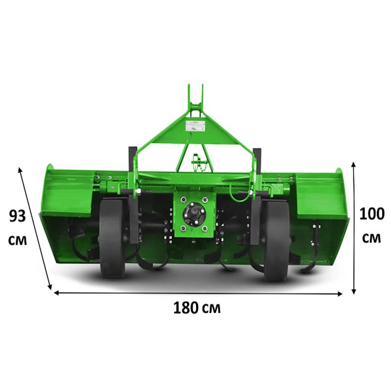 Для регулировки глубины обработки предусмотрена система транспортировочных колёс, которые копируют рельеф поля, что помогает равномерно заглублять ножи на 15–18 см при первом прохождении. Высота колёс легко регулируется благодаря специальным отверстиям на стойках, что позволяет адаптировать фрезу для различных видов работ и типов почвы.