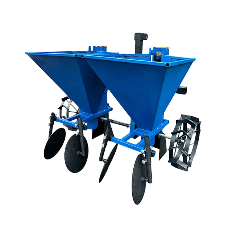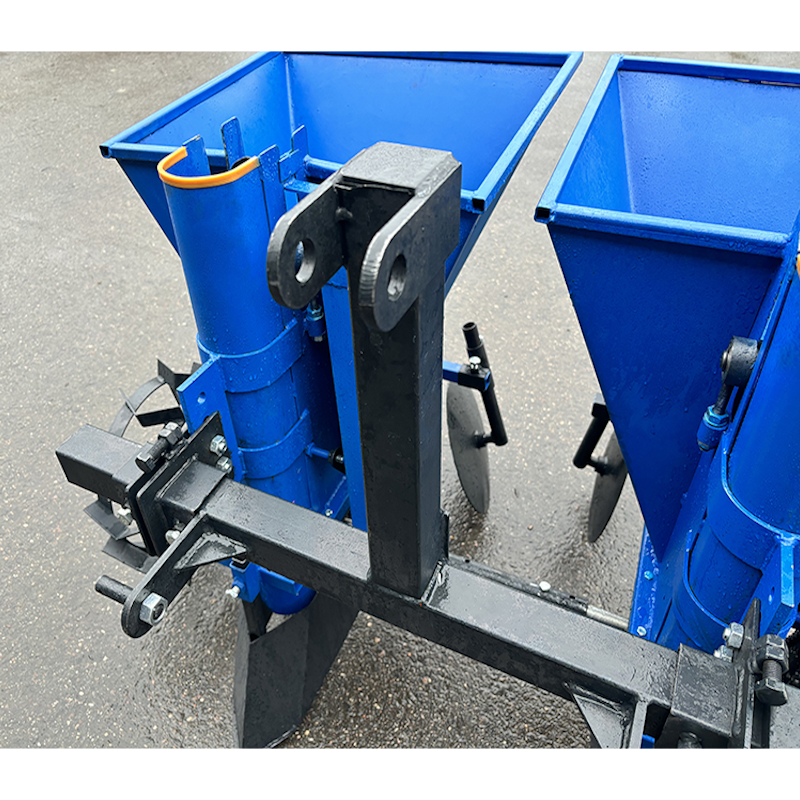 Бункеры объемом по 34 кг обеспечивают длительную работу без частой дозагрузки материала. Ширина междурядий регулируется в диапазоне 50-62 см, что позволяет адаптировать устройство под различные схемы посадки. Глубина обработки от 5 до 18 см и фиксированное расстояние между клубнями (25 или 30 см) способствуют равномерной высадке и отличным условиям для развития растений.