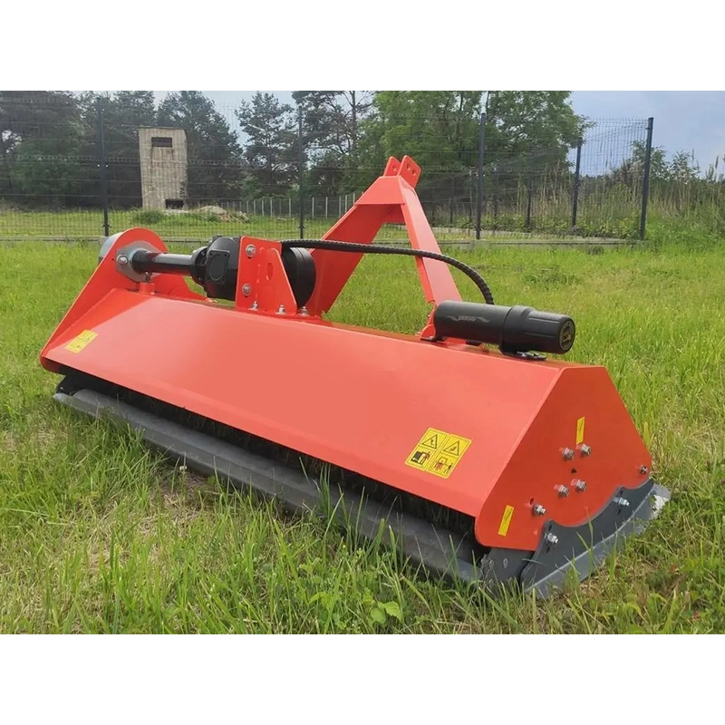 Косилка оснащена 48 ножами и 24 молотками, что обеспечивает равномерное и качественное измельчение травы и кустарников. Наличие гидравлического смещения добавляет удобства и гибкости в работе, позволяя легко регулировать положение косилки в зависимости от условий. Скорость вращения вала отбора мощности (ВОМ) составляет 540 об/мин, гарантируя стабильную и высокопроизводительную работу. Рабочий вал с оборотами 1669 об/мин обеспечивает эффективное измельчение растительного материала.