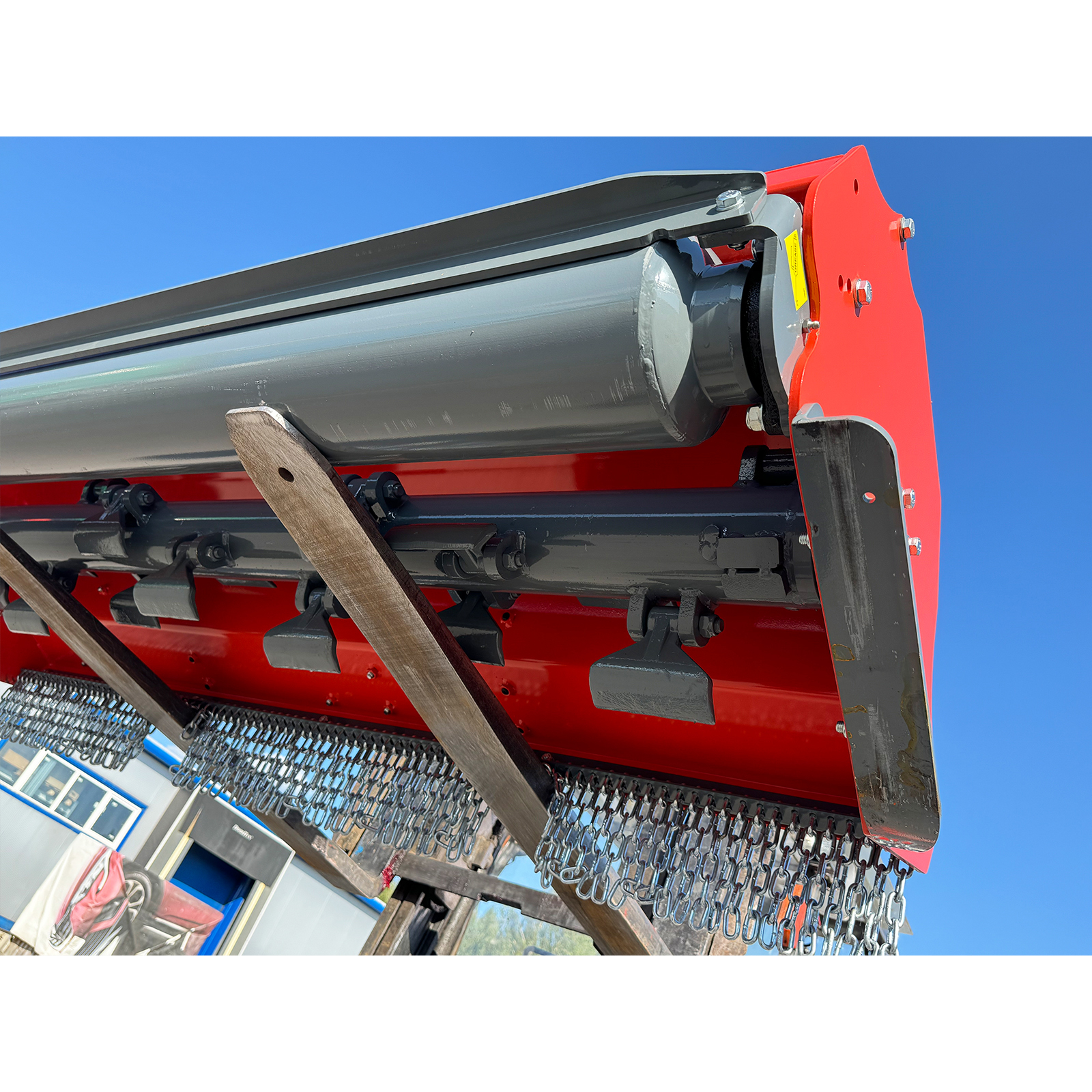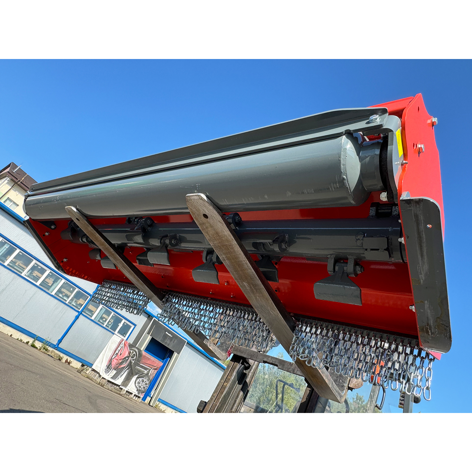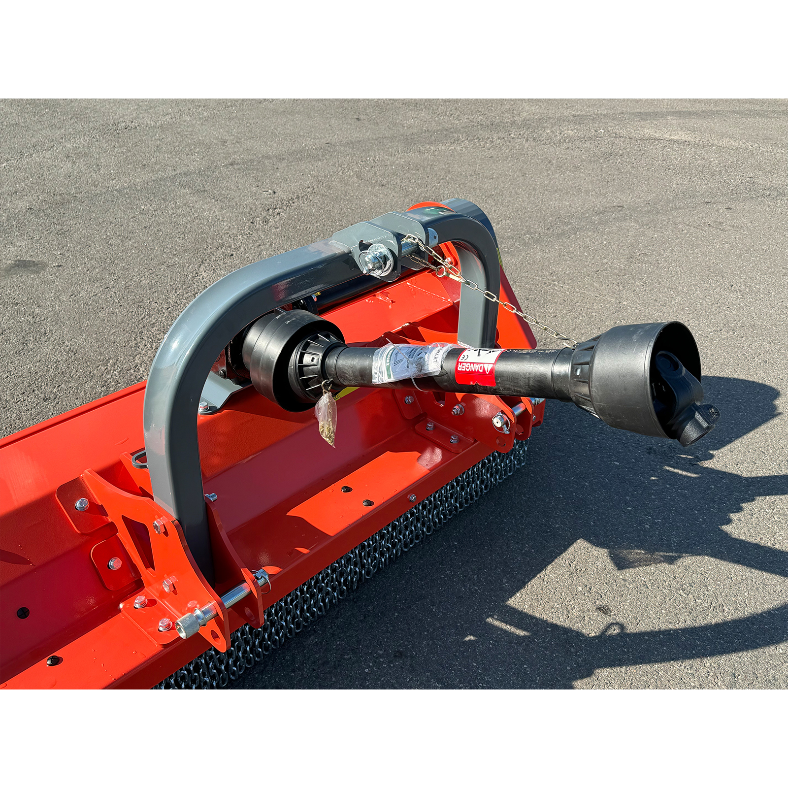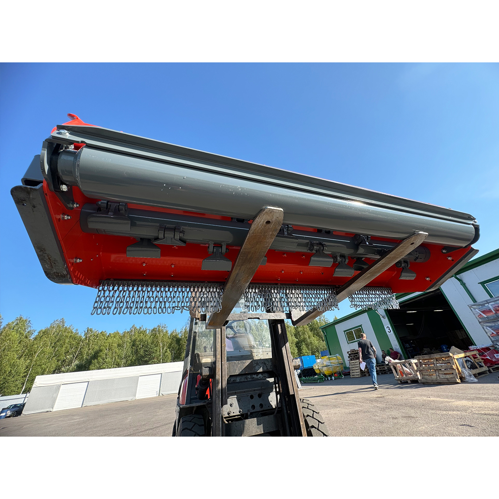 Ротор вращается в противоположном направлении относительно колес трактора, эффективно срезая материал и выбрасывая его вверх и через ротор. Трубка ротора сбалансирована для снижения вибрации, что способствует плавной работе и уменьшает износ подшипников. Косилка смещена вправо от центра трактора, что облегчает работу вокруг препятствий.