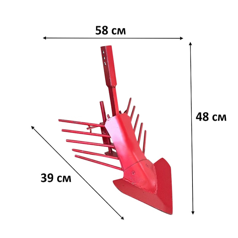 Компактные размеры устройства (длина 58 см, ширина 39 см, высота 48 см) и небольшой вес (6,4 кг) облегчают его установку на мотоблок и эксплуатацию. Легкость конструкции и продуманная форма позволяют картофелевыкапывателю эффективно работать без повреждения клубней, что является важным преимуществом перед традиционными методами.