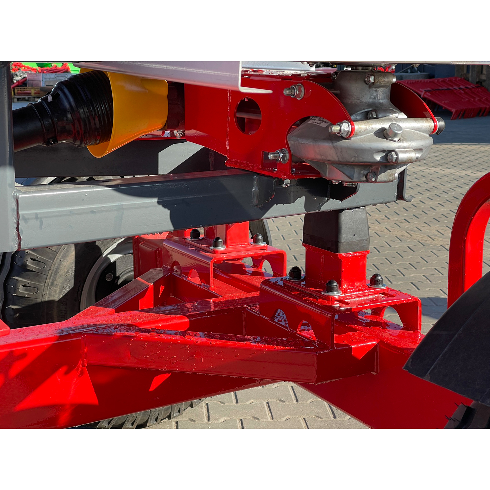 Привод осуществляется от вала отбора мощности (ВОМ), с алюминиевым двухскоростным редуктором, что гарантирует стабильную и эффективную работу. Рабочая скорость достигает 13 км/ч. Разбрасыватель подходит для тракторов тягового класса 1,4 и 2.
