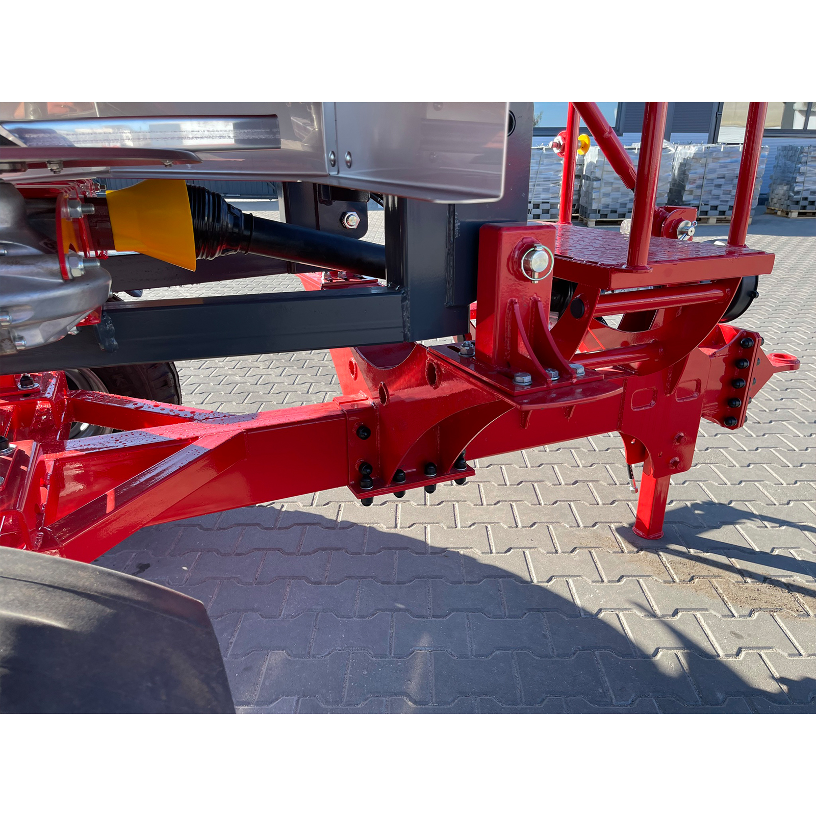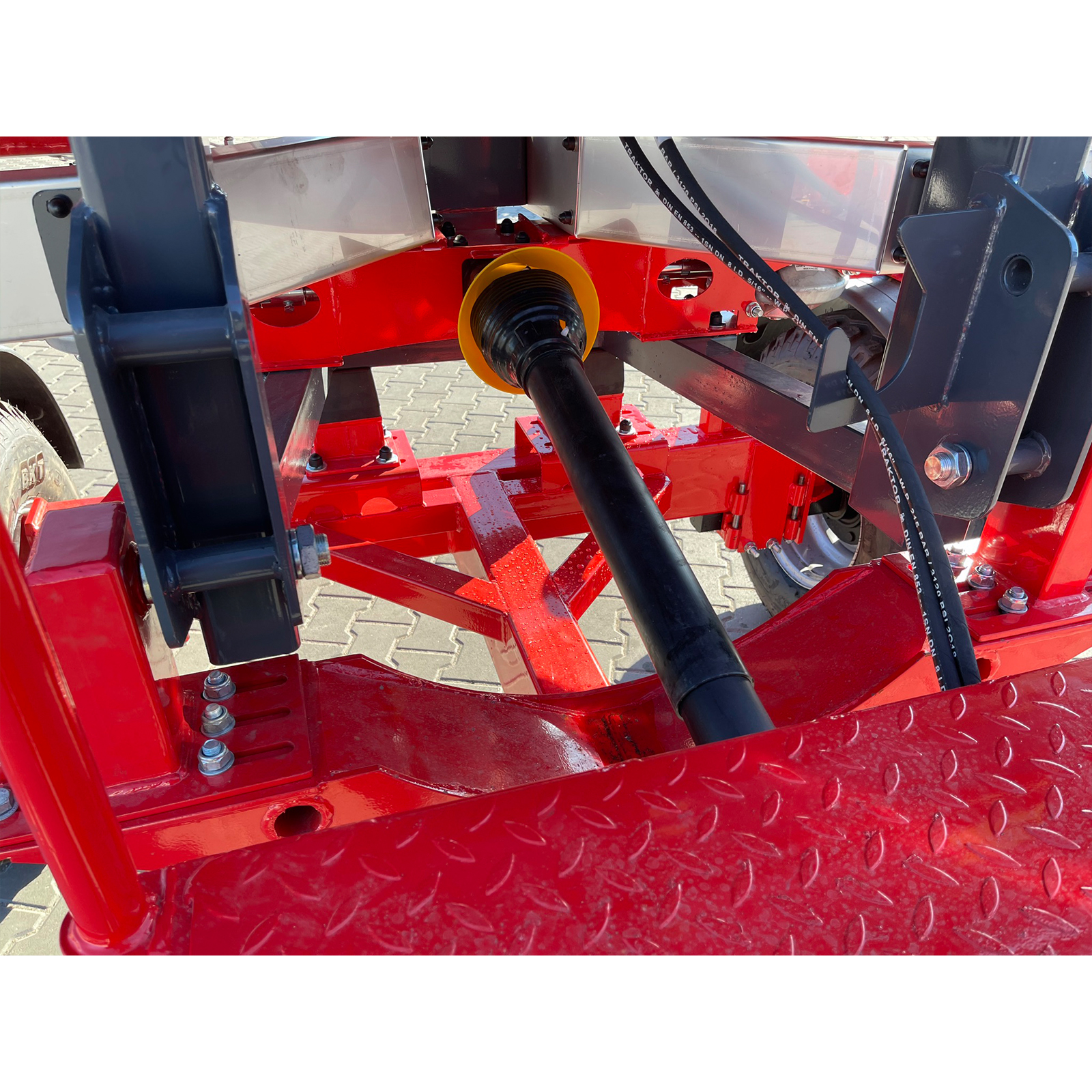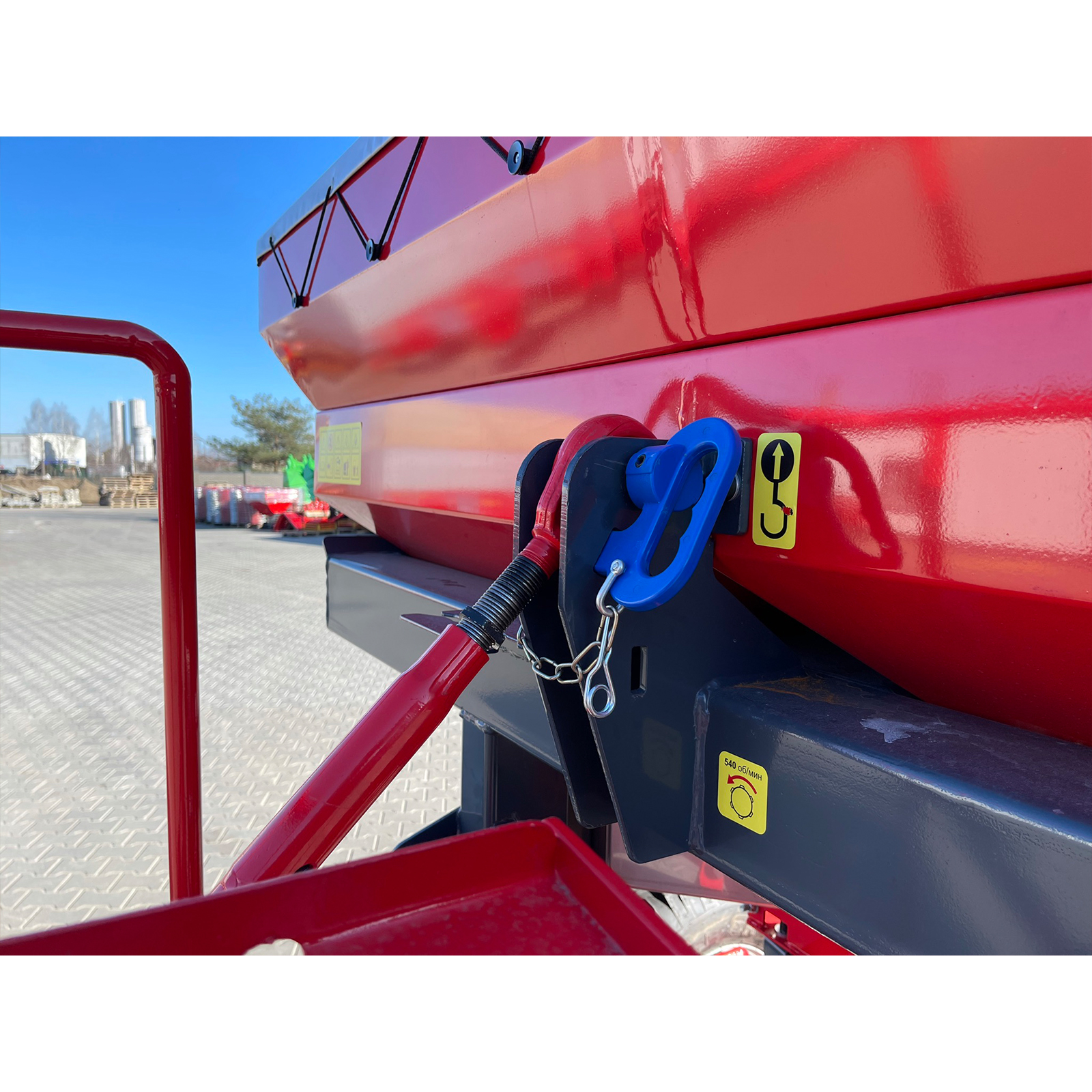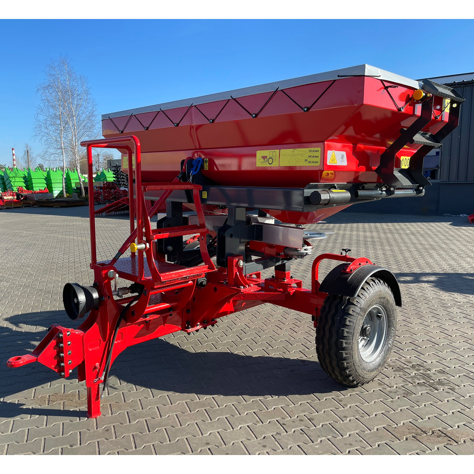 Оборудование оснащено гидравлическим механизмом включения и позволяет управлять им непосредственно из кабины трактора, без необходимости покидать рабочее место. Сетка в бункере предотвращает засорение дозатора комками удобрений, обеспечивая бесперебойную работу.
